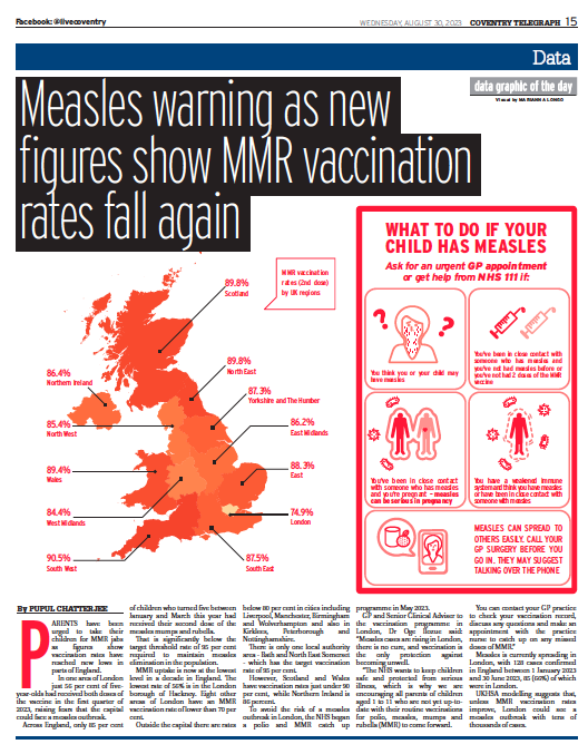 It comes as the UK Health Security Agency warned of a potential outbreak of measles in London due to low vaccine rates. The average rate across England is 85 percent, wh...